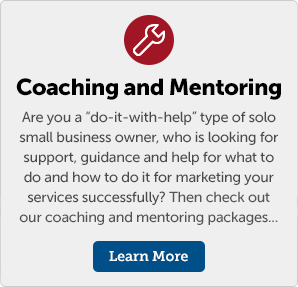 Unfortunately, many marketing coaches and consultants DO NOT know and understand marketing that works for a one person business. And a lot of the marketing help, books, teaching, mentoring, coaching and services available does not apply to solo small businesses and therefore doesn't work, and doesn't get results.