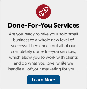 I do this through my products, training programs, coaching, mentoring and completely done-for-you marketing services (all structured to fit many different budget levels). I can do the same for you and your solo business. Check out a few of the links below to get started...